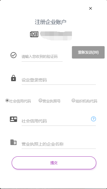 • 企业账户注册中,短信验证码、设定登录密码等功能,与个人帐号一致。