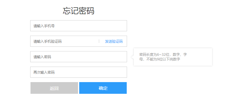 输入您忘记密码的帐号的注册手机号。